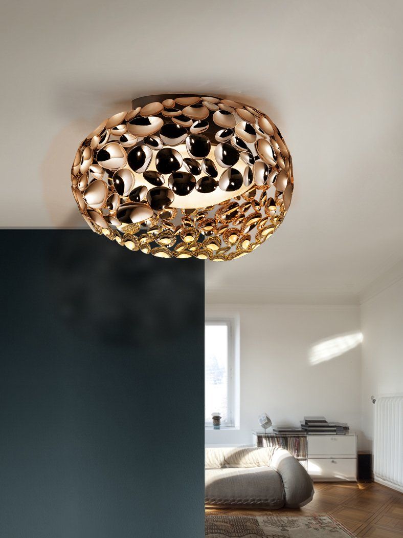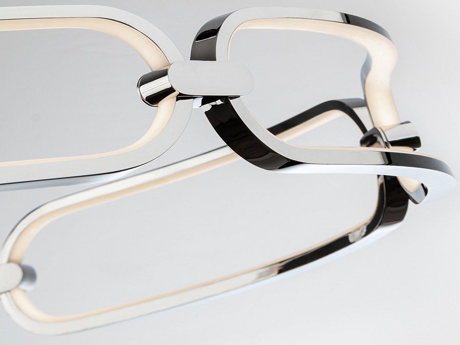 Piccola plafoniera LED in alluminio cromato. Diffusori in silicone opalescente. 37W LED, 3.330 lumen, 3.000 K.