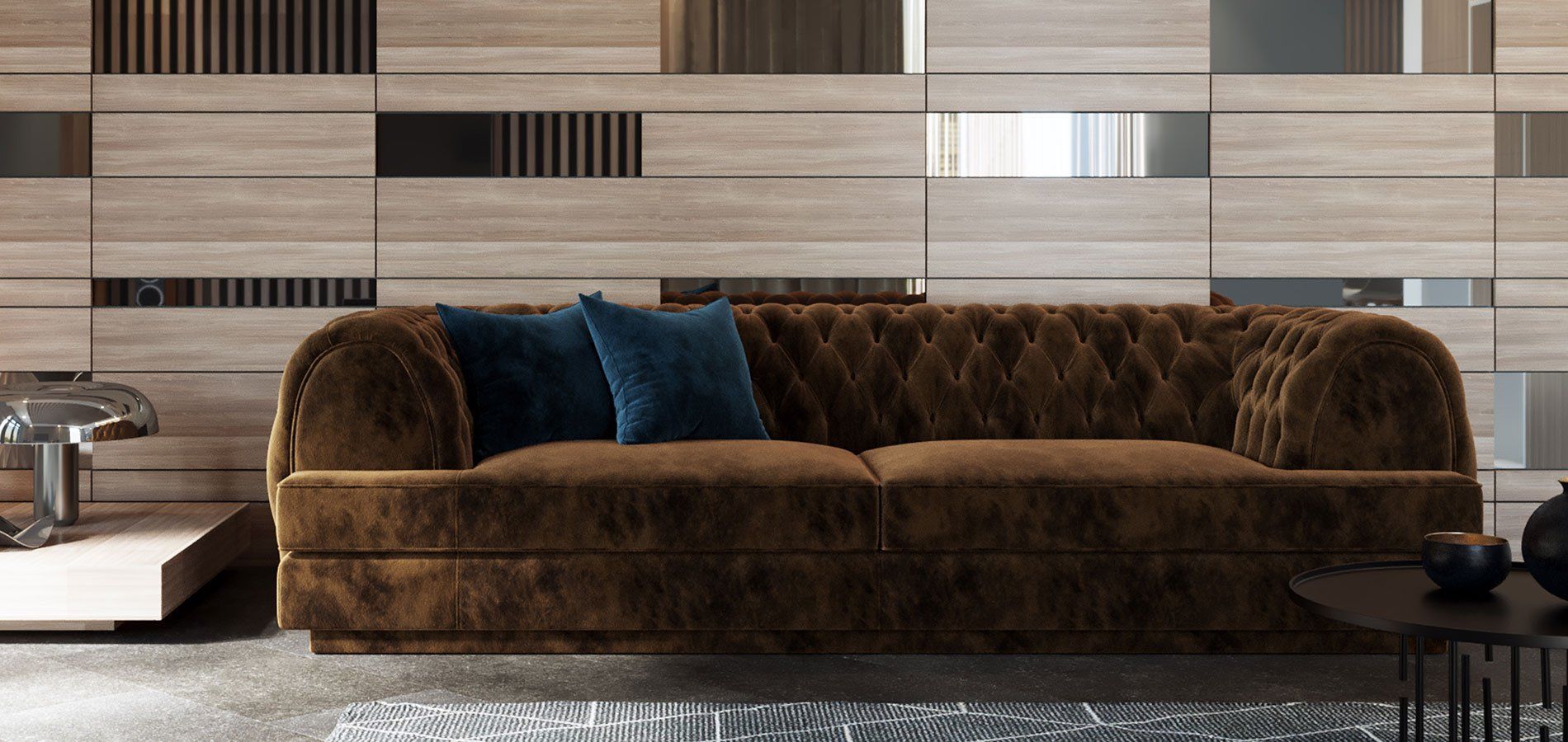 Elba è un divano dalle linee morbide e lussuose, caratterizzato dalla tipica lavorazione capitonnè realizzata a mano. Si differenzia per la bellezza e la qualità pregiata del rivestimento, in pelle o in tessuto e per lo schienale ampio, morbido e sinuoso.