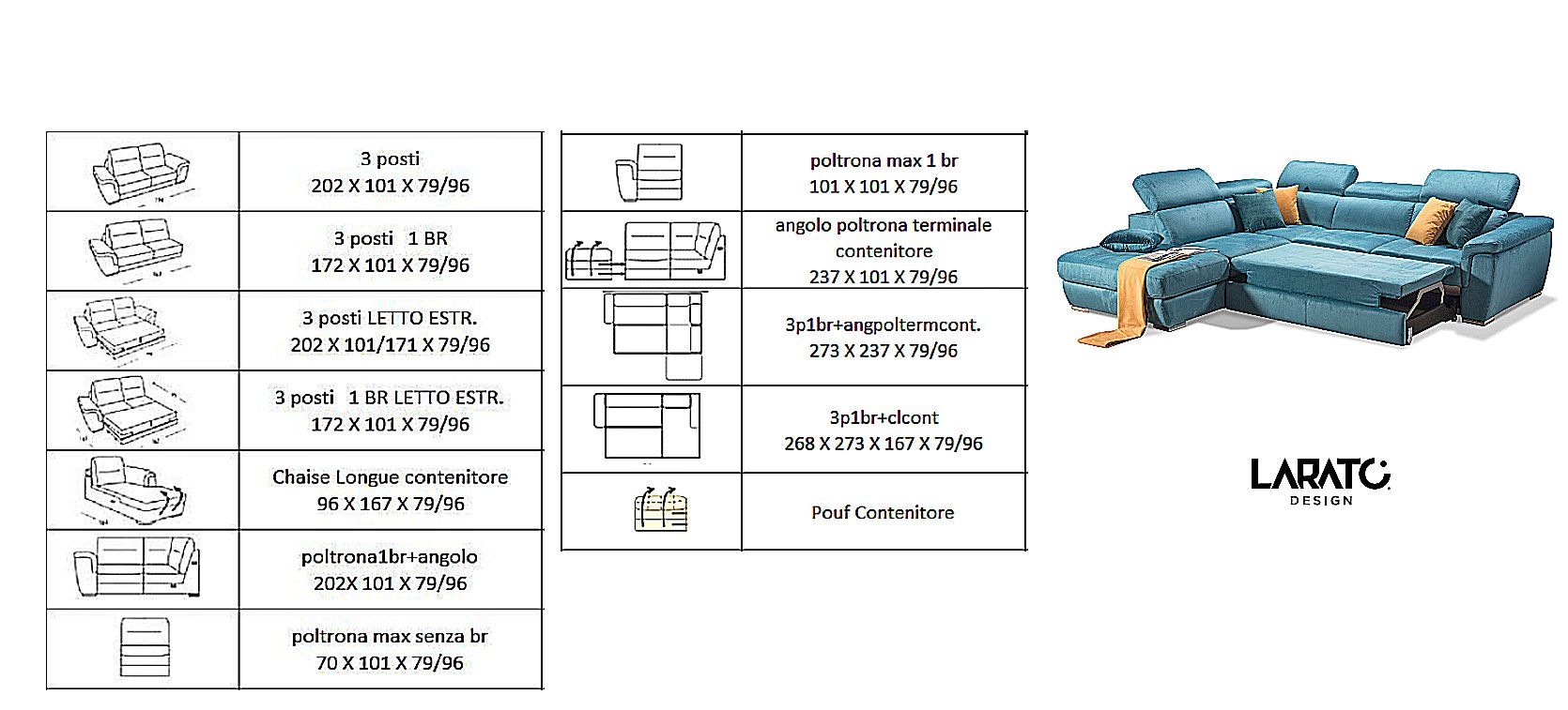 Dotato di funzionali meccanismi poggiatesta e di un sistema panchetta che una volta estratto trasforma il divano in un comodissimo letto.