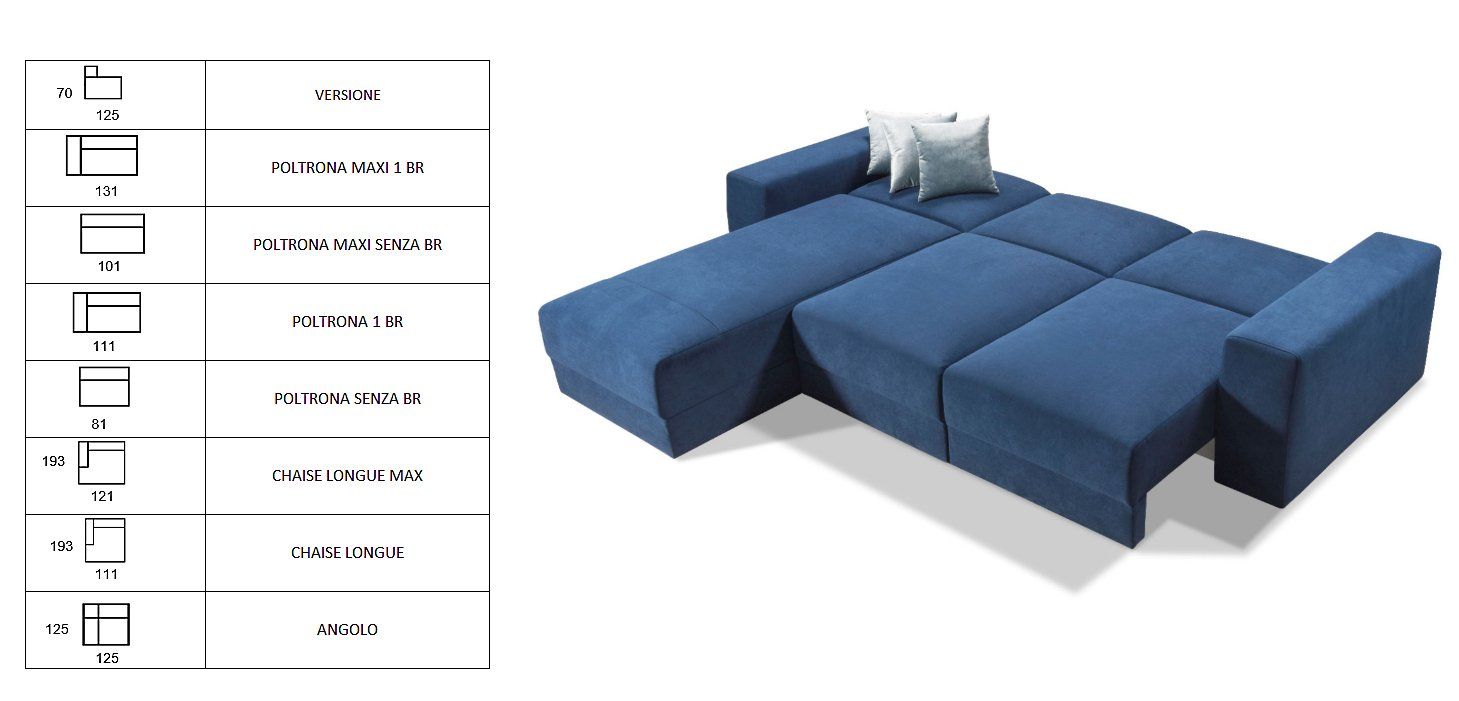 Uno stile unico nel modello Pavia, con e sedute scorrevoli che trasformano il divano in un comodo letto.