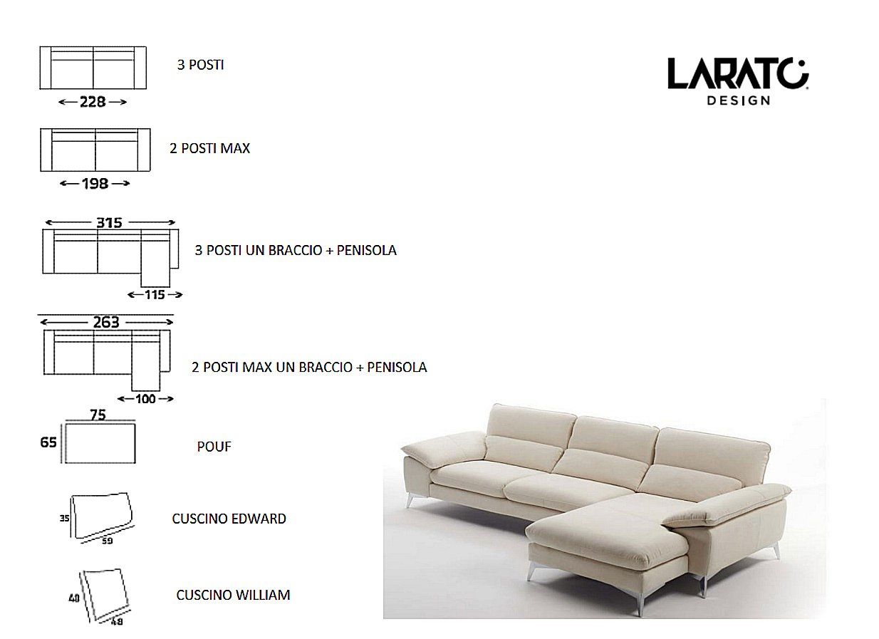 Moderno e di classe, comodissimo. Dispone di un bracciolo leggermente inclinato ideale per poggiarci la testa quando sdraiandosi ci si vuole concedere momenti di relax.